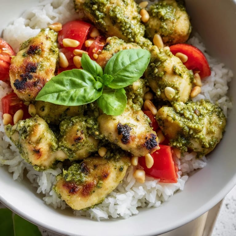 Save My neighbor knocked on the door one Tuesday evening holding a jar of homemade pesto, insisting I had to try it before it went bad. I had chicken thawing and leftover rice in the fridge, so I tossed it all together in a bowl. The smell of garlic and basil filling the kitchen made me realize sometimes the best meals aren't planned at all. That spontaneous dinner became my go-to whenever I need something quick, nourishing, and bright.