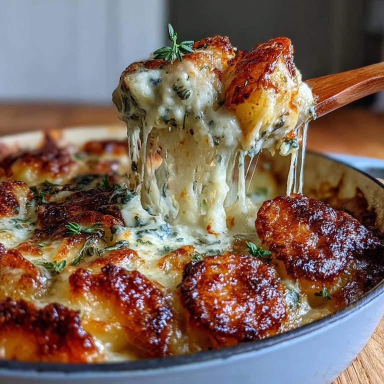 Save By pre-roasting the smashed potatoes before adding the cream, you ensure that the texture remains interesting rather than just soft. The olive oil helps the edges catch the heat, creating those sought-after caramelized bits that contrast beautifully with the bubbling cheese topping.