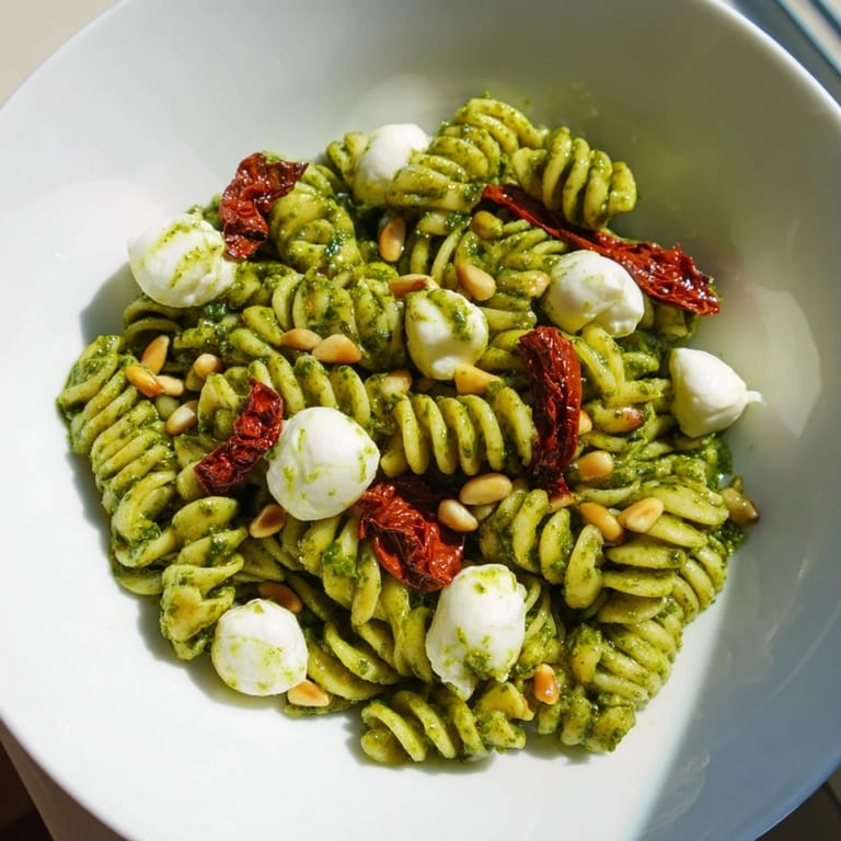 Save One evening, a friend who usually avoids pesto because she thought she didn't like it ate two full bowls of this salad without realizing what the green flavor was. When I told her, she laughed and asked why this tasted nothing like the sad pesto she'd had before, which taught me that context and freshness matter way more than you'd expect.