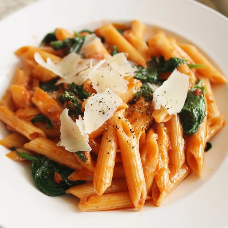 Save There's something about a weeknight when you're standing in front of the open pantry, exhausted, and spot that familiar red jar of marinara sitting right there like an old friend. I discovered this pasta almost by accident one Tuesday evening—I'd planned something fancier but my energy had other ideas. What started as a quick fix turned into one of those dishes that somehow tastes both satisfying and bright, especially when you wilt that fresh spinach right into the warm sauce and watch it transform from crisp to silky in seconds.