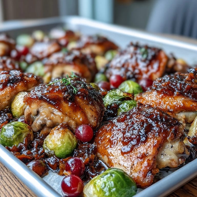 Save My neighbor stopped by one autumn afternoon with a bag of grapes from her farmer's market haul, and I had no idea what to do with them beyond eating them straight from the bowl. She casually suggested roasting them alongside chicken, and something about that combination sparked curiosity. That evening, I threw together what I had on hand—chicken thighs, Brussels sprouts, a splash of balsamic vinegar—and the kitchen filled with this incredible aroma that stopped everyone in their tracks. What emerged from the oven was unexpectedly sophisticated yet effortless, the kind of meal that tastes like you've been planning it all week.