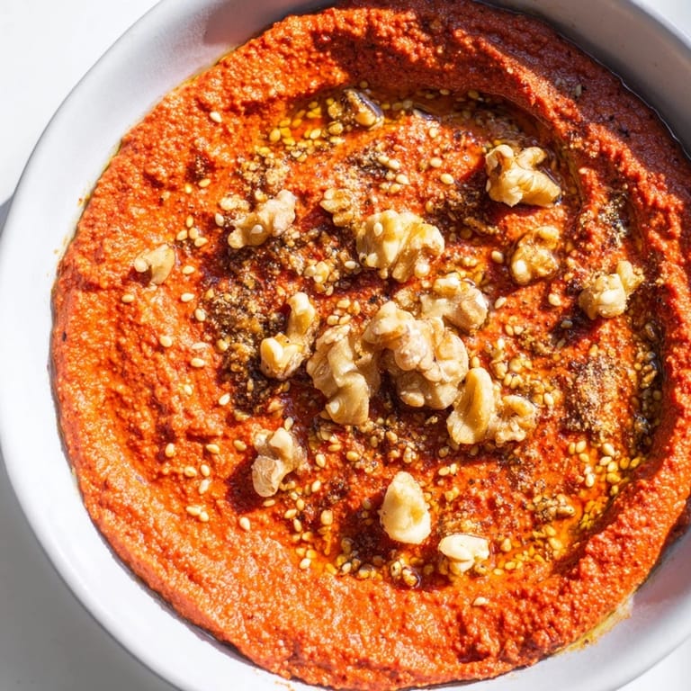Save There's something about serving muhammara that turns an ordinary afternoon into something that feels special. My neighbor once took one bite, closed her eyes, and asked where I learned to cook like that—and I realized it wasn't about technique, it was about understanding that food is a kind of translation, carrying someone else's memory right into your kitchen and onto someone else's table.