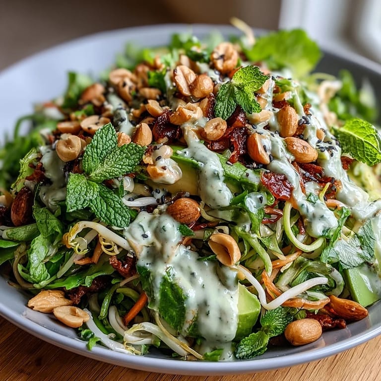The beauty of this salad is that it welcomes substitutions without losing itself. Add julienned radishes or snap peas for extra crunch, swap almond butter or tahini if peanuts aren't in your kitchen, or introduce sriracha if you want heat that builds as you eat. I once made this with sunflower seed butter because that's what I had, and honestly, it was slightly earthier and just as good, which taught me that flexibility isn't compromise.